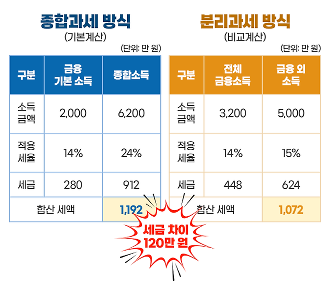 분리과세 방식(비교계산)으로 계산했을 경우에는