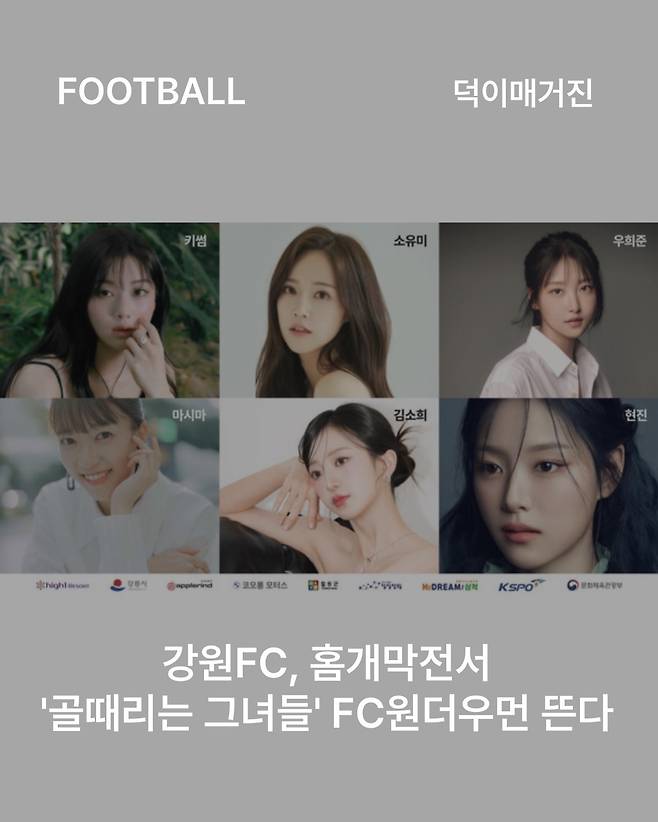 강원FC가 홈개막전을 맞아 SBS 인기 예능 프로그램 '골 때리는 그녀들' 팀 FC 원더우먼과 함께 특별한 이벤트를 준비했습니다. 강원FC는 오는 15일 오후 4시30분 강릉하이원아레나에서 열리는 FC안양과의 하나은행 K리그1 2026 3라운드 홈 개막전에 FC 원더우먼 멤버들이 방문해 다양한 이벤트를 진행한다고 밝혔습니다. 이날 경기장에는 키썸, 소유미, 우희준, 마시마, 김소희, 현진이 등 FC 원더우먼 멤버들이 참여해 팬들과 만날 예정입니다. FC 원더우먼은 SBS 예능 프로그램 ‘골 때리는 그녀들’에 출연하는 팀으로, 김병지 강원FC 대표이사가 감독을 맡고 있습니다.