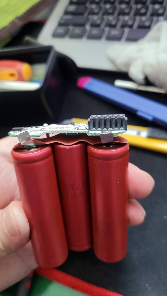 저렇게 18650종류의 3.7V 3개가 들어있었습니다.