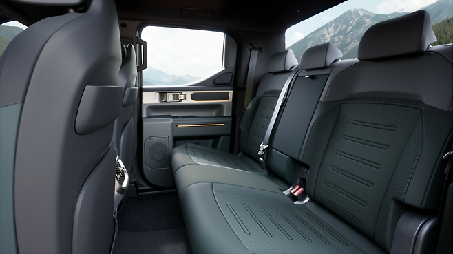 타스만의 뒷좌석은 단순한 보조석이 아닙니다. 전 트림에 세계 최초로 적용된 슬라이딩·리클라이닝 2열 시트는 등받이 각도 조절뿐 아니라 시트 전·후 슬라이딩까지 가능합니다. 이를 통해 동승자의 착좌 공간을 획기적으로 넓혔으며, 장거리 주행에서도 피로도를 최소화할 수 있는 '패밀리 SUV'에 가까운 공간이 구현됐습니다. 픽업트럭이면서도 패밀리카의 조건을 갖췄다는 점에서, 승용 감성과 레저 기능의 완벽한 조화로 평가받습니다.