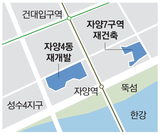 이 관계자는 “간혹 다가구 매물만 평당 1억5000만원 안팎에 거래되고 있다”고 전했다. 한 건설업계 관계자도 “한강변 프리미엄이 갈수록 높아지고 있긴 하지만 자양동 일대 정비사업은 아직 초기 단계여서 유의해야 한다”고 전했다.