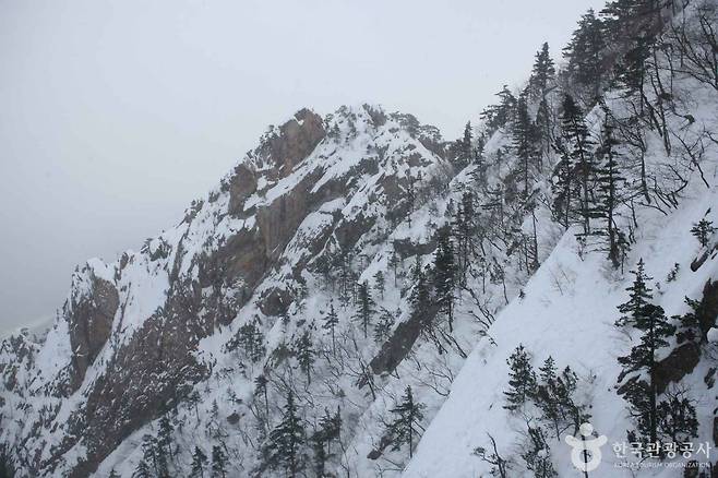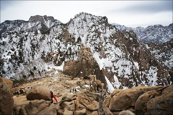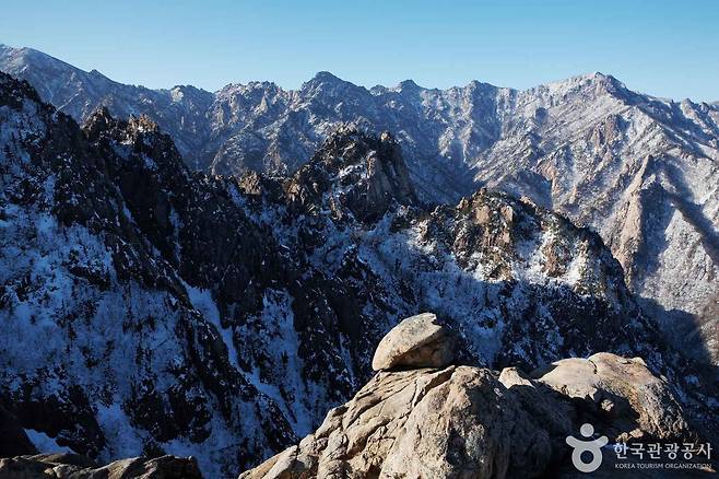 외설악의 갖가지 기암괴석이 파도처럼 이어지는 풍경, 설악산 주봉 대청봉으로 이어지는 능선의 실루엣, 눈 덮인 산 아래로 작게 내려다보이는 속초 시내와 동해, 이 모든 것을 한 프레임 안에 담을 수 있어, 사진 촬영을 좋아하시는 분들에게 특히 만족도가 높은 장소입니다.
