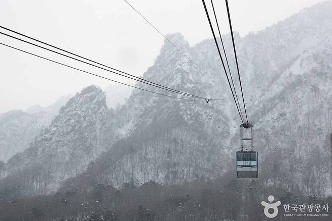 특히 겨울에는 바위 사이사이로 눈이 깔려 있어 산수화 같은 풍경을 만들어 주어, 이동 시간마저 하나의 감상 코스가 됩니다. 참고로 케이블카는 편도 이용이 불가능하고 왕복권만 발권이 가능하니, 일정 계획 시 참고해 두시면 좋습니다.