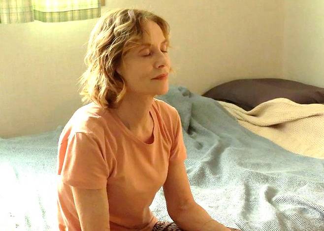 영화는 크게 세 챕터로 구성되어 있다. 프랑스에서 온 여행자 이리스(이자벨 위페르)는 한국에서 프랑스어를 가르치고 있다. 누구도 이리스가 왜 한국에 왔는지 알지 못한다. 고국에서 어떤 일을 했는지, 언어를 가르쳐 봤는지, 물어봐도 제대로 알려주지 않는다. 그저 맨발로 땅을 밟는 게 좋고, 시원한 바위에 눕는 걸 즐기고, 하루에 막걸리 한 병이면 족할 뿐이다.