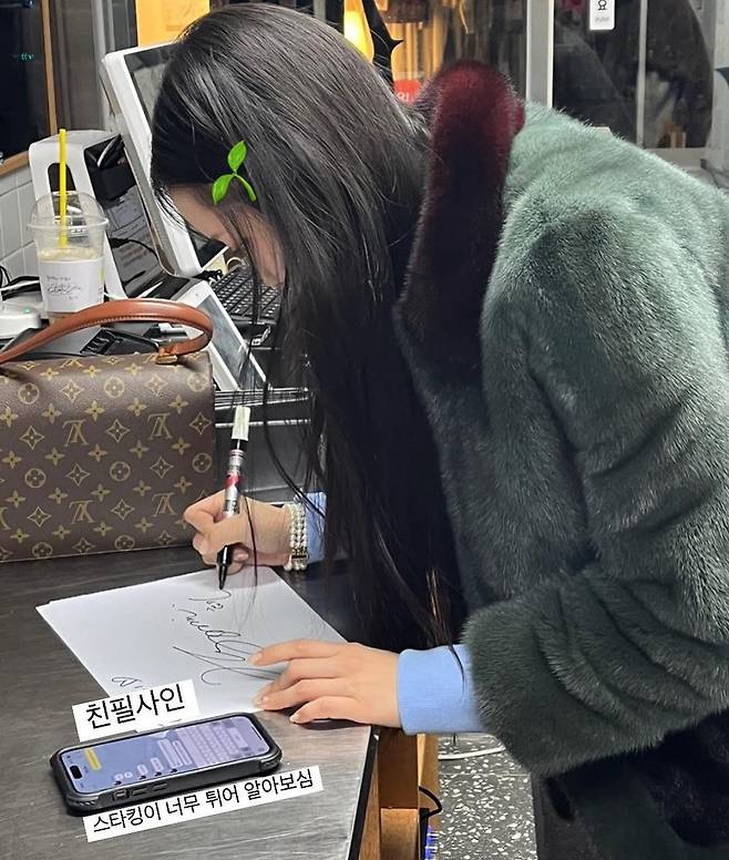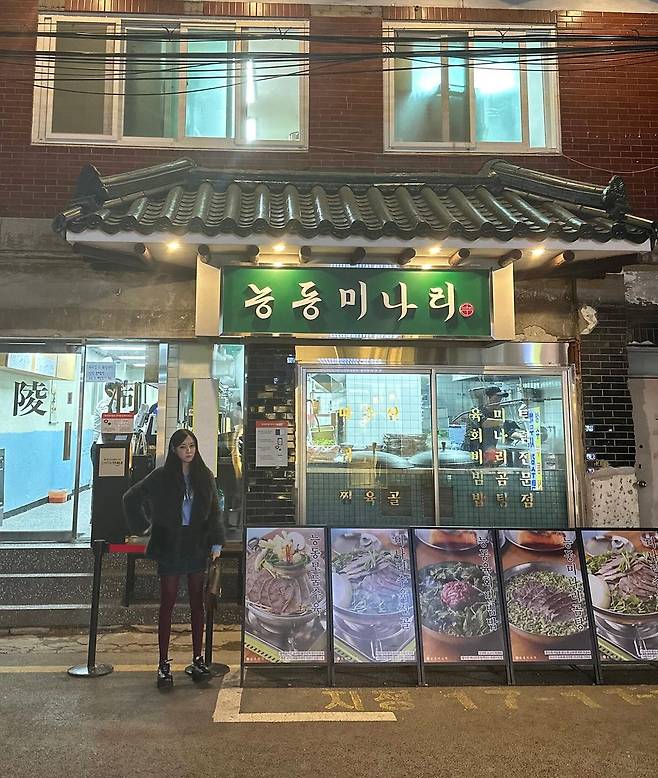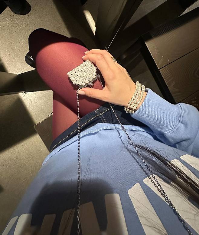 공개한 사진에서 효민은 스카이블루 맨투맨과 짧은 청치마를 입고 빨간 스타킹을 신었다. 그린빛 모피코트를 걸쳐 패셔너블한 모습을 선보였다.