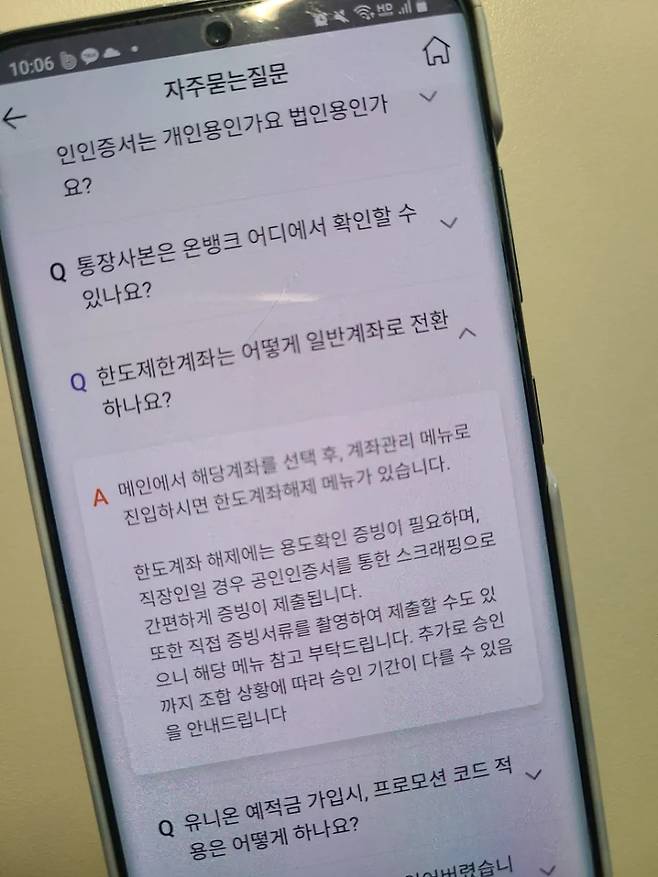 한.도.제.한.계.좌는 어떻게 일반계좌로 전환하나요? 라는게 있더라고요