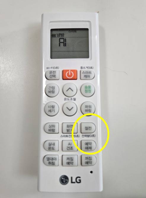 껐다 켰다 한다면 전기세 더 나옵니다. 외출시 '절전모드' 버튼을 누르세요.