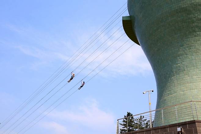 짚트랙은 청자타워에서 바다를 가로질러 활강하는 하이라이트다. 약 1km급 길이로 소개되는 해상 구간이 속도를 책임지고, 체험 시간은 1분 남짓의 농축된 긴장으로 기억을 덧칠한다.