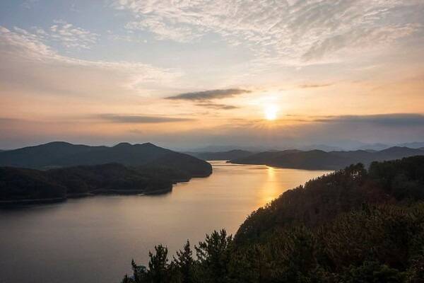 진주 외곽에 위치한 진양호는 도시의 허파 역할을 하는 아름다운 호수입니다.