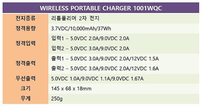 또한 자체 충전 중에도 무선 충전 기능을 지원하기 때문에 야외에서는 스마트폰 보조배터리로 사용하고, 실내에서는 무선 충전 패드로 활용하는 것도 가능하다.