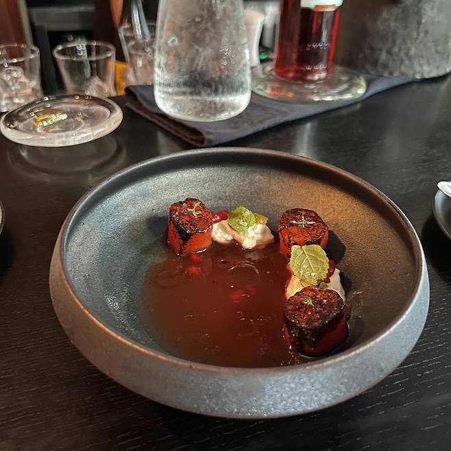 어두운 내부를 강렬한 붉은 조명이 비치는 이곳. 오픈 키친을 볼 수 있는 바 자리에 앉으면 눈앞에서 화로로 요리하는 불 쇼를 볼 수 있어 오감이 만족되는 경험을 할 수 있다. 스타터부터 마지막 디저트까지 모두 최고급 숯과 참나무로 조리되며 특히 차가운 식재료인 수박과 후식 아이스크림에까지 불향을 입힌 것이 인상적. 이곳의 시그니처 디쉬인 우대갈비는 함께 나오는 새콤달콤한 동남아시아 스타일 소스 그리고 매쉬드 포테이토와 완벽한 밸런스를 이루는 맛이니 꼭 주문해 보자. 마련된 자리가 많지 않으니 방문하고 싶다면 미리 예약은 필수이다.