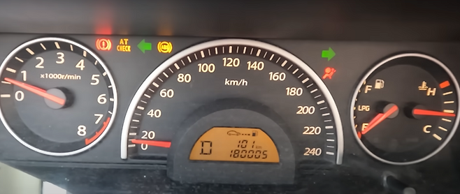 그러나 시간이 조금 지나자 풀 악셀을 밟아도 속력이 올라가지 않는 모습을 볼 수 있었고 에어백 경고등과 ABS 경고등이 점등이 된 모습을 볼 수 있었습니다.