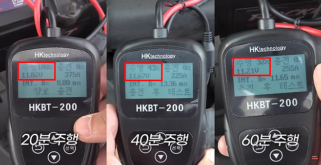 실험을 시작하기 전에 실험 차량의 배터리 상태 또한 확인을 해보았지만 배터리는 특별한 문제 없이 양호한 상태였습니다.