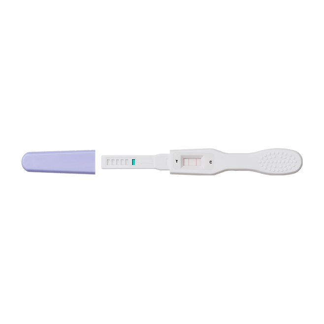 임신테스트기와 비슷하다고 생각하시면 돼요. 소변을 묻힌 후 약 10분 정도 기다리면 결과가 나타나요.