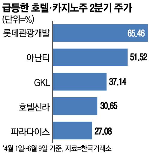 호텔·카지노 관련주들 주가가 연일 호조세를 이어가고 있다.