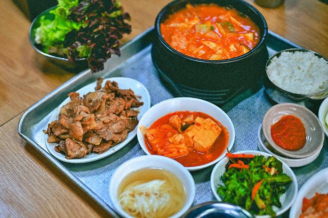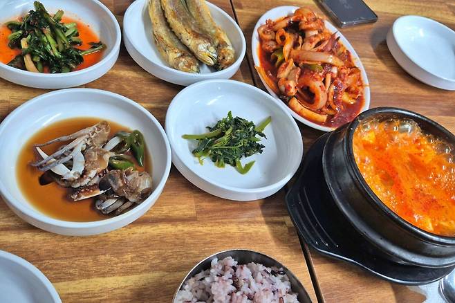 제육은 맵지 않게 조리돼 남녀노소 부담 없이 먹을 수 있으며, 된장찌개는 된장과 두부, 채소가 조화롭게 어우러져 깊은 맛을 낸다. 생선구이는 바삭하게 구워 나오고, 짜지 않은 간장게장은 감칠맛의 정석. 백반 마니아와 여행객들에게 입소문 난 ‘찾아가는 기사식당’이다.