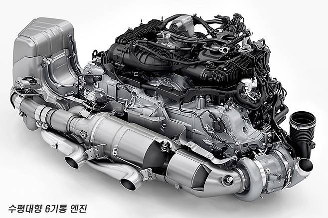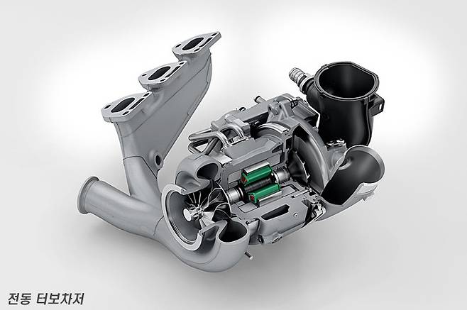 3리터 버전은 좌우 뱅크에 각각 하나씩 총 두 개의 터보차저를 탑재하고 있지만, 3.6리터 버전은 하나의 전동 터보차저로 충분히 성능을 발휘하며, 경량화에도 기여하고 있다. 전동 터보차저의 모터는 컴프레서 지원뿐만 아니라, 여분의 배기 에너지를 전기 에너지로 회생하는 역할도 한다. 이는 곧 열 에너지 회생 시스템으로 작동한다는 의미다.