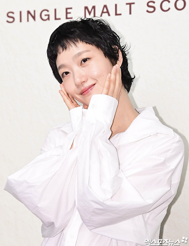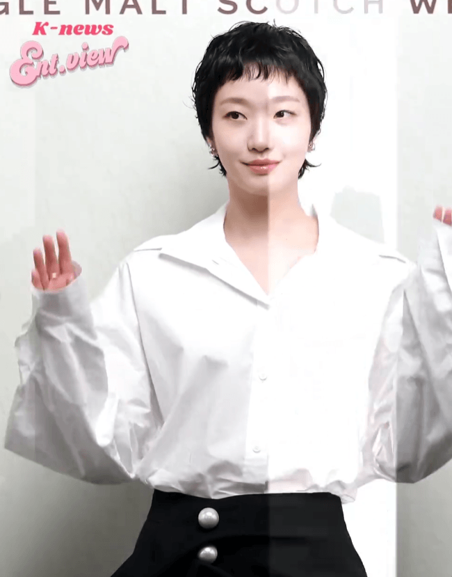 김고은의 숏컷 헤어스타일은 그녀의 얼굴형을 더욱 돋보이게 하며, 세련된 이미지를 완성했습니다.