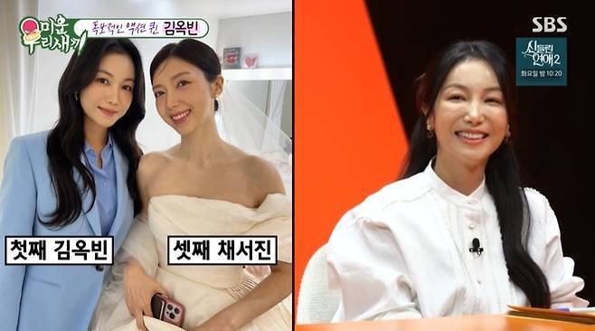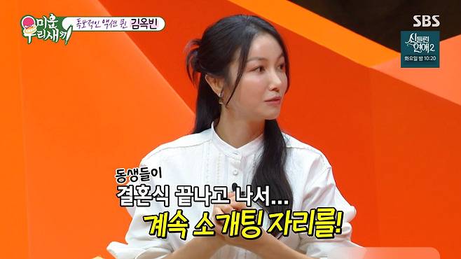 김옥빈은 "동생이 결혼할 때 빼앗기는 기분이 들더라. 그래서 결혼 조건으로 내 신랑을 찾아오라는 조건을 걸어서 동생이 계속 소개팅을 해줬는데 쉽지 않더라"고 덧붙였다.