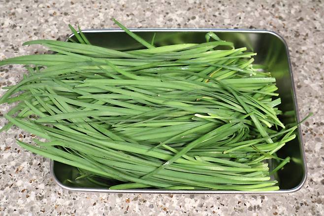 부추 250g 정도 준비했어요. 반단 정도 되는 양이에요.