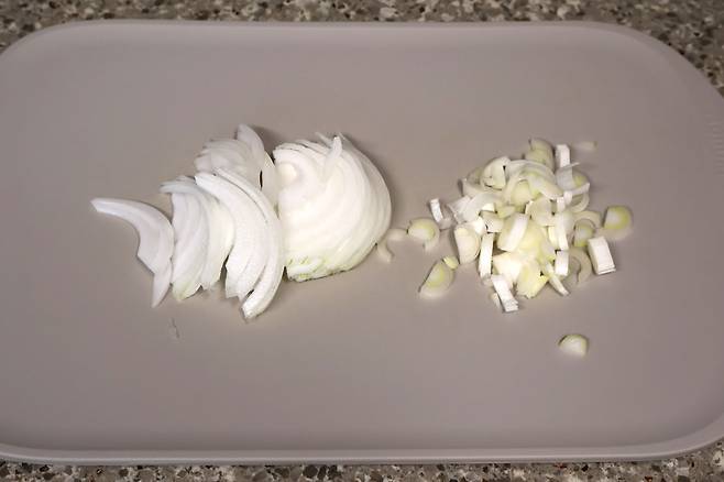 물기가 빠질 동안 양파와 대파를 준비합니다.