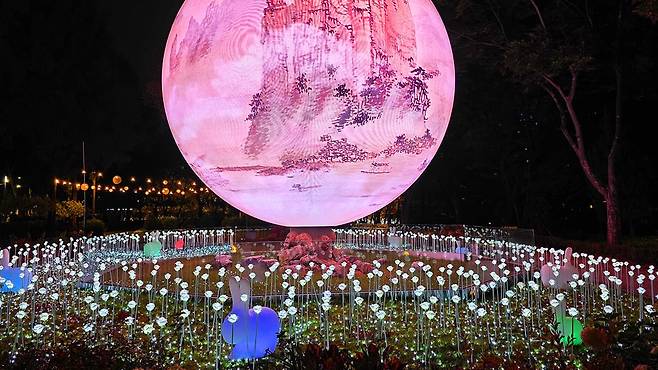 더 스피어: 2025년 봄 완공된 지름 7m의 초대형 구형 미디어아트 조형물입니다.
