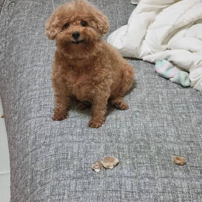 강아지의 동그란 배를 보고 주인은 순식간에 웃음을 터뜨렸습니다. 사람들의 의심도 충분히 이해가 됩니다.