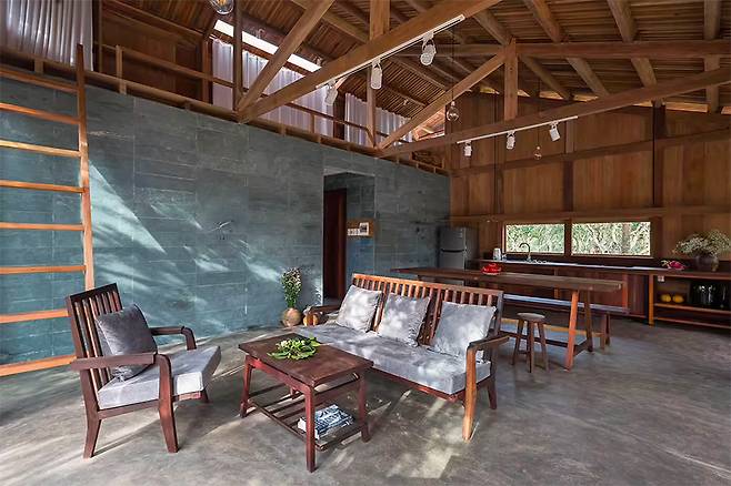집 안은 필요 이상의 장식을 배제하고, 거칠지만 따스한 감각의 콘크리트와 목재, 천연석으로 마감되었다. 개방형 구조로 설계된 공간은 각 기능이 유기적으로 연결되며, 가족 간의 소통을 자연스럽게 유도한다.