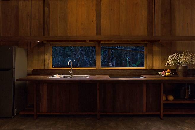 자연에 대한 경의와 실용적인 미학을 절묘하게 결합하여, 마치 세상에서 잠시 떨어져 쉬어가는 안식처 같은 집을 완성했다.