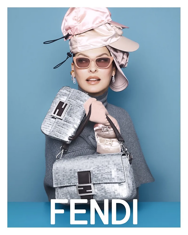 펜디는 펜디 바케트(Fendi Baguette)백 탄생 25주년을 기념해 90년대 전설적인 슈퍼모델 린다 에반젤리스타(Linda Evangelista)를 다시 광모 모델로 캐스팅하며 추억을 선사했다.