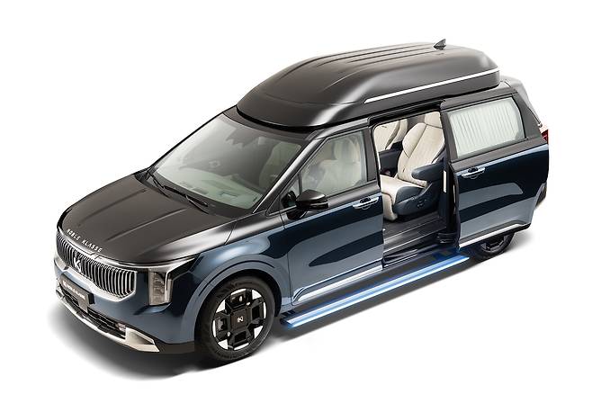 실내가 좀더 고급스러움의 선택지가 넓어졌다면, 노블클라쎄에서 직접 디자인하고 제작한 시그니처 룸램프는 2열에 탑승한 VIP가 편안한 조도를 제공해 이동 간 안락한 서비스를 경험할 수 있게 했다. 이와 함께 LED 웰컴 라이트가 적용된 전동 사이드 스텝은 탑승하는 순간부터 내리는 순간까지 운전자와 탑승자를 위한 안전성을 더욱 더 강화했으며, 편안한 승차감을 위해 ▲MR댐퍼 ▲터치식 통합 컨트롤러 ▲전동 풋레스트와 ▲전동 레그레스트는 물론 ▲냉온장고 ▲러기지 옷걸이 바 ▲시트백 파우치 등 각종 편리 기능도 옵션으로 선택해 일등석과 같은 느낌을 자아내게 한다.