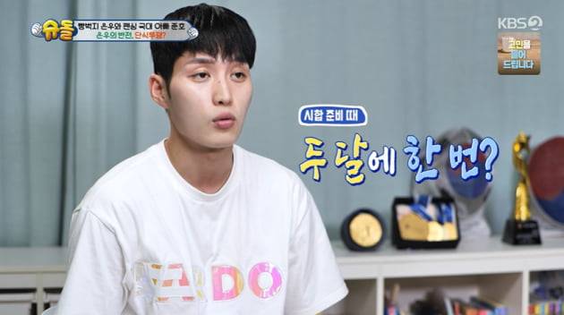 이어 "이번 세계 선수권 같은 경우 준비하는 기간동안 한 달에 한 번 밖에 볼 수 없는 상황이어서"라고 설명했다. 은우의 입장에선 10번 본 사람과 밥을 먹는 것. 김준호는 40분 만에 아내에게 전화해 상황을 설명했다.