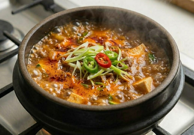 특히 이 레시피는 복잡한 육수 없이도 깊은 맛이 나는 것이 특징인데요. 고기의 풍미, 된장의 감칠맛, 그리고 고추기름 이 세 가지 조합이 핵심입니다.
