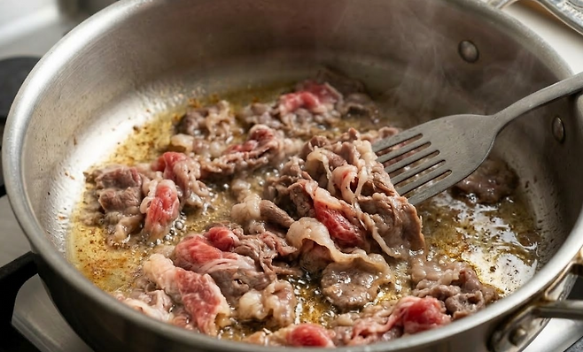 ▶ 1. 차돌 먼저 볶기