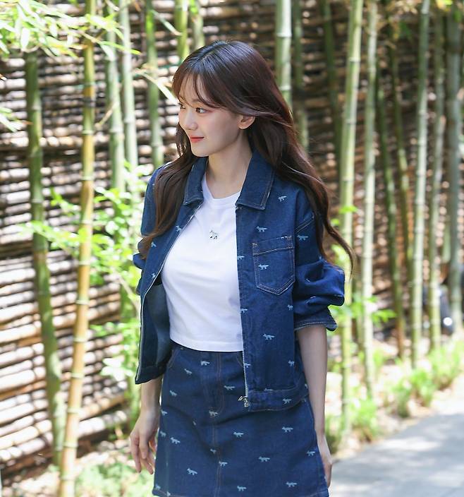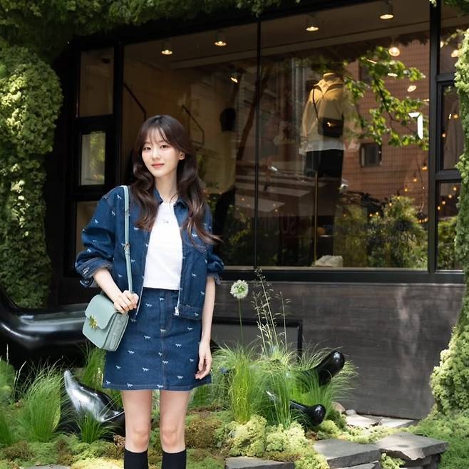 조이현이 선보인 이번 룩은 데일리하면서도 세련된 감성이 느껴지는 데님 셋업이에요.