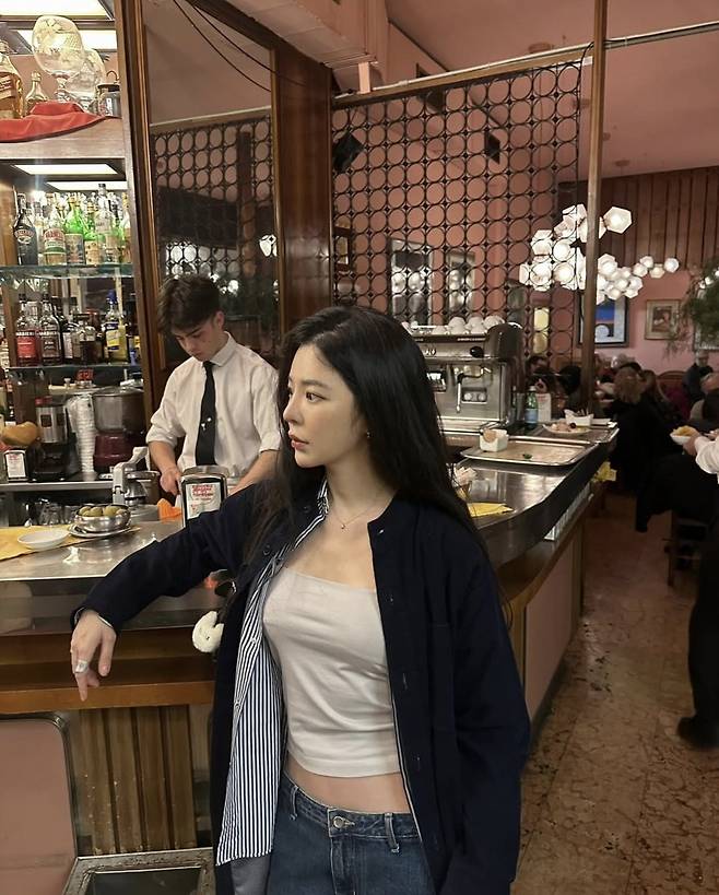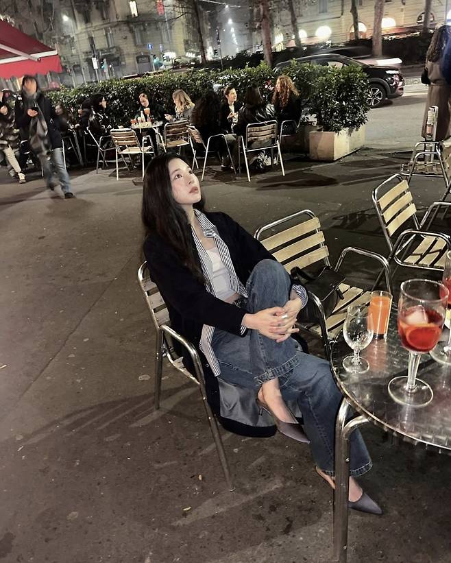 특히 자연스럽게 흐트러진 듯한 롱 헤어와 차분한 메이크업이 룩을 더욱 감각적으로 완성했습니다.