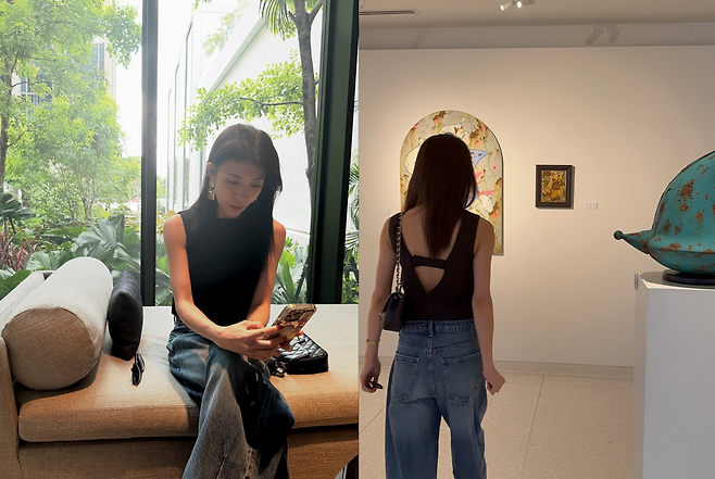 톱배우의 휴식은 이런 모습일까. 미술관에서 작품을 감상하고, 조용한 공간에서 사색에 잠기는 모습은 바쁜 촬영 일정 속에서도 자신을 잃지 않는 그녀의 내공을 보여준다.