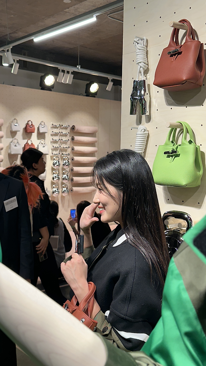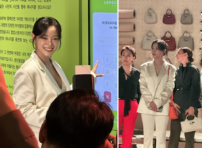롱샴의 대표 앰배서더! 김세정은 올화이트룩으로 시크함과 깔끔함, 청량함이 모두 담긴 패션을 보여주었는데요!에너지와 우아함을 모두 느끼길 원하는 "에너지 바이 롱샴"이라는 팝업 컨셉과 참 잘 어울리는 것 같습니다!
