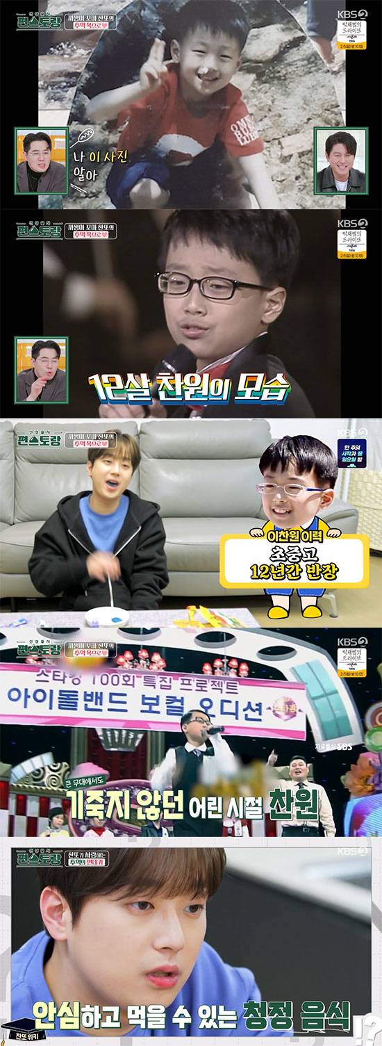 추억의 간식들을 펼친 이찬원은 자신의 어린 시절을 회상했다. 그는 "매해 반장, 학년장을 했다. 전교 회장도 했다"면서 "관심받는 것을 좋아하고 사랑받는 것을 좋아해서 결국 이렇게 연예인이 된 것 같다. 초등학생 때부터 그랬다"고 밝혔다. 이와 함께 어린 시절 이찬원이 트로트 신동으로 SBS 예능 프로그램 '스타킹'에 출연했을 당시 영상도 공개됐다. 이찬원은 어린 나이에도 무대를 휘어잡는 모습을 보인 것. 이에 당시 패널이었던 MC 붐은 "기억난다. 나오자마자 무대를 뒤집어 놨다"라고 회상해 눈길을 끌었다.