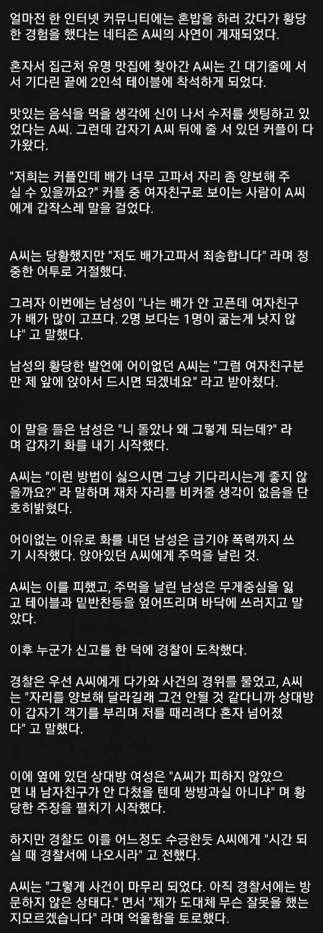 혼밥하러 갔다가 경찰서 출두 요청 당함