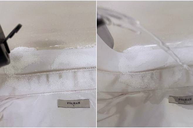 비교사진 보시면 더 잘 비교되실 거예요. 과탄산소다 하나로 정말 쉽게 해결할 수 있었어요. 남방 목때 힘들게 빨지 마시고 과탄산소다로 쉽게 해결해 보세요^^*