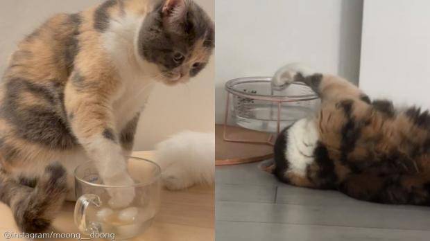 이 영상은 지난 22일 SNS에 올라와 네티즌들의 큰 반응을 얻었는데요. 한 네티즌은 "물은 먹어야겠고 귀찮고...눕고는 싶고...방광신장 건강은 챙겨야겠고...많은 욕구들이 뒤섞인 포즈"라고 댓글을 달아 웃음을 줬습니다.