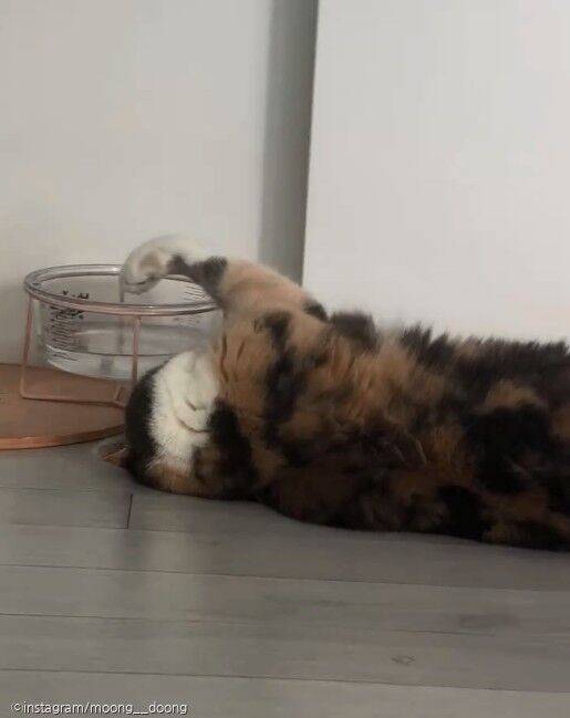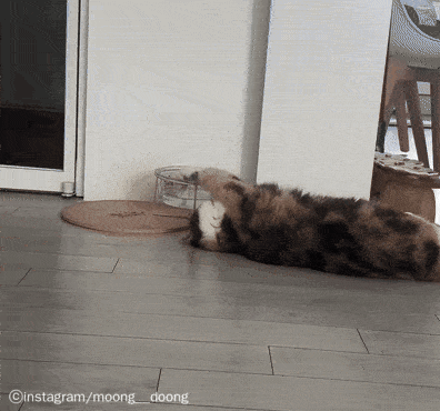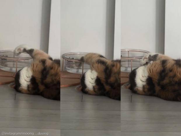 사람이라면 이렇게 누워서 무언가 먹고 있으면 바로 어머니한테 등짝을 맞았을 텐데요. 다행히도(?) 둥찌는 고양이라서 혼나기는커녕 귀엽다며 집사가 영상으로 남긴 것입니다.