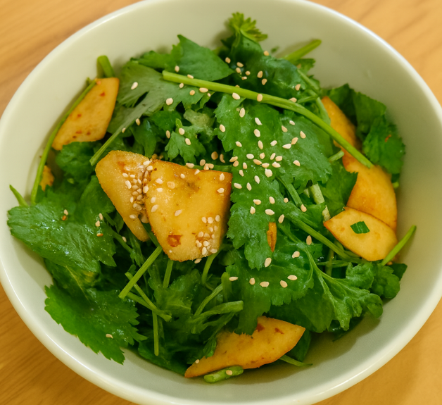 아삭하고 향긋한 참나물과 사과의 조화는 봄철 입맛을 살려줄 뿐만 아니라, 눈 건강과 피부 미용에도 좋은 영양을 듬뿍 담고 있습니다.