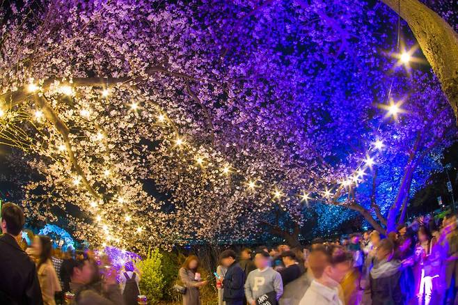 여의서로에는 제주도가 원산지인 왕벚나무를 중심으로 약 1,800그루 이상의 벚나무가 심어져 있습니다. 벚꽃이 만개하면 국회의사당을 둥글게 감싸는 형태의 꽃터널이 만들어지는데, 축제 기간에는 도로를 전면 통제하기 때문에 차 걱정 없이 길 한가운데를 걸으며 꽃구경을 할 수 있습니다.