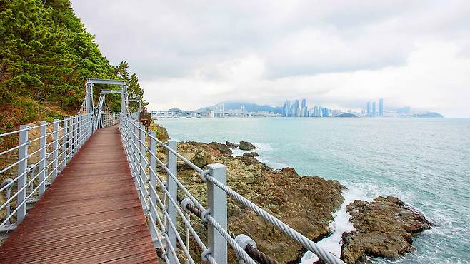 갈맷길 2코스이자 부산국가지질공원의 일부로 절벽 위 데크길, 남해 바다의 확 트인 조망, 해송과 동백나무로 둘러싸인 그늘진 숲길이 모두가 어우러진 자연친화적 코스입니다.