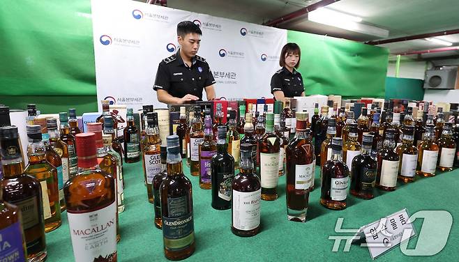 관세청 서울본부세관은 고가 위스키 5435병(시가 52억원 상당)을 수입신고 없이 밀수입하거나 실제 가격보다 낮은 가격으로 세관에 신고하는 수법으로 관세 등을 포탈한 의사, 대학교수, 기업 대표 등 10명을 적발해 검찰에 송치했다고 이날 밝혔다. 2025.8.5/뉴스1