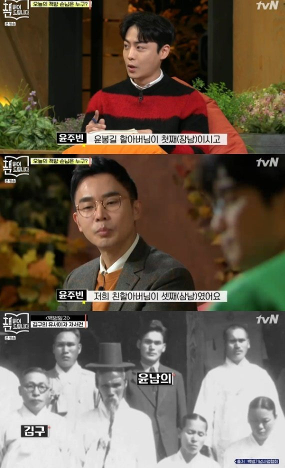 tvN '책 읽어드립니다'에 출연한 윤주빈은 김구 선생의 증손자 김용만 씨와의 인연도 공개했다.