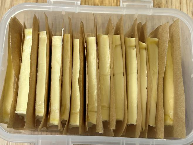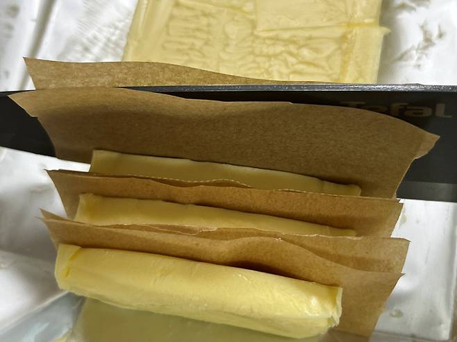 이렇게 하면 필요할 때마다 적당량을 하나씩 꺼내서 쓰고 편합니다. 그리고 공기와의 접촉을 줄일 수 있어 버터가 쉽게 상하지 않습니다.