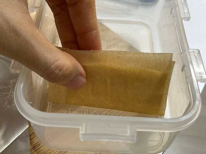 이렇게 종이호일로 감싼 버터를 밀폐용기에 하나씩 넣어 주세요.